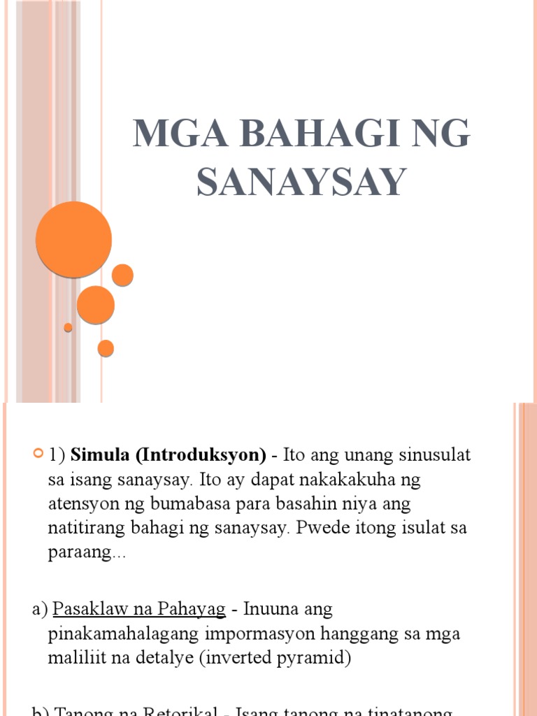 SANAYSAY Kahulugan Mga Uri At Mga Bahagi Nito. Alam ko ang paksa pero hindi ko alam kung paano ako.