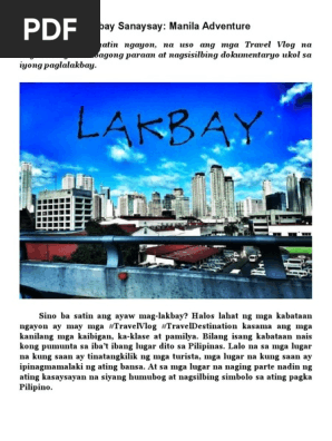 Lakbay sanaysay tungkol sa manila. Ako at ang aking mga kaibigan ay nagpunta sa sikat na parke sa pilipinas at ito ay ang luneta park na matatagpuan sa manila. Lakbay Sanaysay Adelle R. Hanggang dito na lang at sana ay natuwa kayo at nainitindihan ang aking Lakbay Sanaysay.